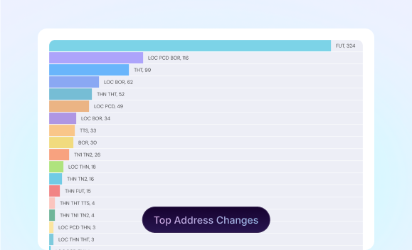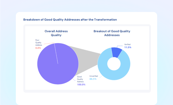 Repair examples from your dataset. Here you’ll see a sample list of your existing addresses and how they’ve been refined to their best state. This preview gives you a clear insight into how DataTools Seltaris processes your file and provides confidence in knowing exactly how your data will look before you receive the complete file.